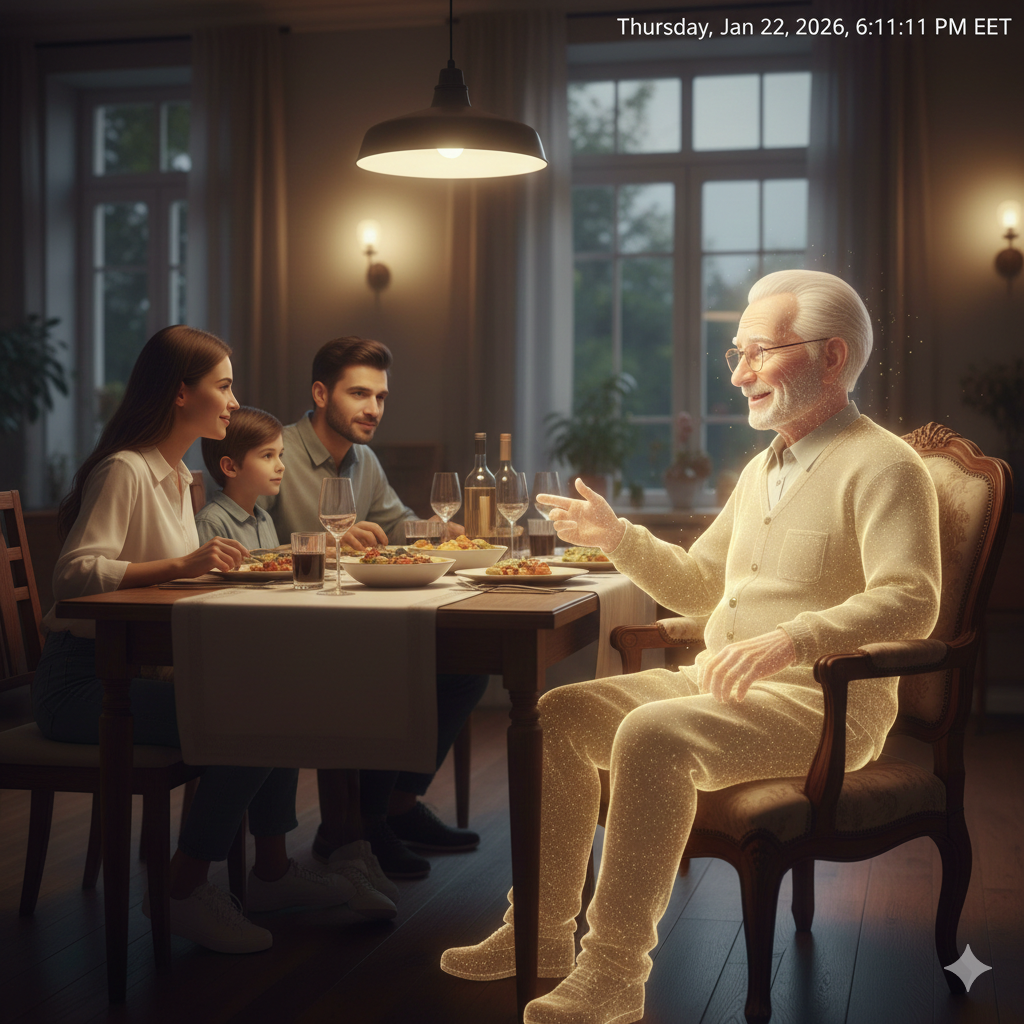 Мы привыкли, что время — это улица с односторонним движением, а ушедшие поколения остаются лишь на пожелтевших фото. Но что, если память станет живой, а цифровой след человека позволит восстановить его личность для теплой беседы? Эра окончательных прощаний уходит в прошлое. И глазом не успеете моргнуть, как семейные легенды перестанут быть просто рассказами. Как это работает? Мы входим в эпоху нейрореконструкции личности и голографического присутствия. Немного юмора Главный курьез будущего — это семейные споры с «цифровым» дедушкой. Вы пытаетесь внедрить в доме систему умного управления, а он ворчит из проектора: «В моё время мы сами выключали свет, и нейроны у нас были настоящие, а не ваши эти... кремниевые!» И глазом не успеете моргнуть, как возникнет новая проблема: «Мам, аватар прапрабабушки опять поссорился с нашим умным холодильником и заблокировал доступ к десертам, пока я не выучу стих!» В чем главная интрига? Сможем ли мы по-настоящему отпускать прошлое, если оно всегда будет