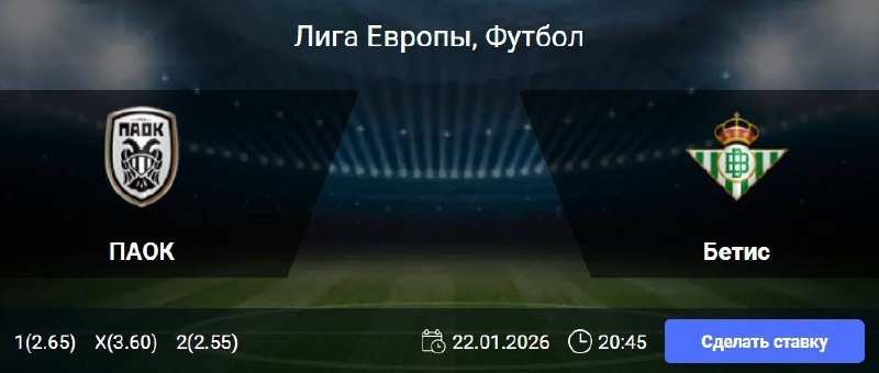 Статистика ПАОКа: В пяти из семи последних матчей ПАОКа в Лиге Европы было забито не менее четырех голов. На домашнем стадионе команда не проигрывает в рамках турнира уже пять встреч подряд (2 победы, 3 ничьи). В четырех из пяти предыдущих домашних игр Лиги Европы ПАОК не пропускал. Статистика Бетиса: В шести последних выездных матчах Лиги Европы «Бетис» не пропускал более одного гола. Команда не проиграла в девяти из двенадцати предыдущих гостевых встреч в рамках турнира (8 побед, 1 ничья). В шести из восьми последних выездных игр Лиги Европы «Бетис» забивал не более одного мяча. 🎯 ТБ (2.5) 🎲 кф (1.77) 👉 СДЕЛАТЬ СТАВКУ 🎁 ФРИБЕТ WINLINE - 3000₽ (промокод: BETWIN) 👉 СМОТРЕТЬ ПРОГНОЗ 👇 Подпишись на нас 🧿 ВКонтакте ✈️ Телеграм 📎 Сайт