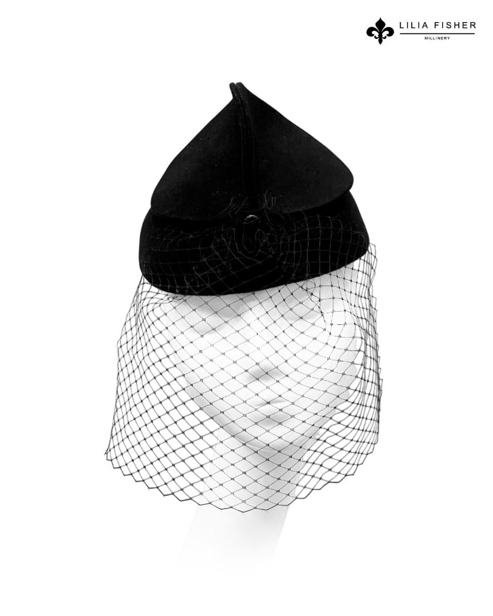 Элегантная шляпка "Микки" из фетрового велюра с кокетливыми "ушками" и вуалью 🖤
