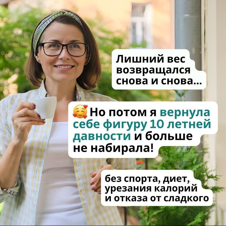 За пару лет прибавила больше 20 кг. Сначала это просто раздражало — не нравилось отражение в зеркале, одежда сидела плохо. Потом начали появляться проблемы со здоровьем: одышка даже после короткой прогулки, боли в коленях, постоянная усталость. «Нужно худеть, иначе будет хуже» — сказал мне кардиолог и направил в институт диетологии. Да, там я сбросила вес. Но вернувшись к прежнему образу жизни, я сорвалась — вес вернулся очень быстро, и привёл с собой «друзей» в виде лишних кг. Так продолжалось несколько лет на разных диетах, и я уже смирилась, что никогда не вернусь в нормальную форму. А потом я случайно наткнулась в интернете на необычный метод питания, который полностью отличался от всего, что я пробовала раньше. Вместо строгих ограничений и подсчёта калорий — рациональное сочетание продуктов. Не нужно было голодать, убирать сладкое или отказываться от привычной еды. Сначала я не поверила. Но решила попробовать — и не пожалела! ✅ За первый месяц — минус 6 кг, при этом ни разу