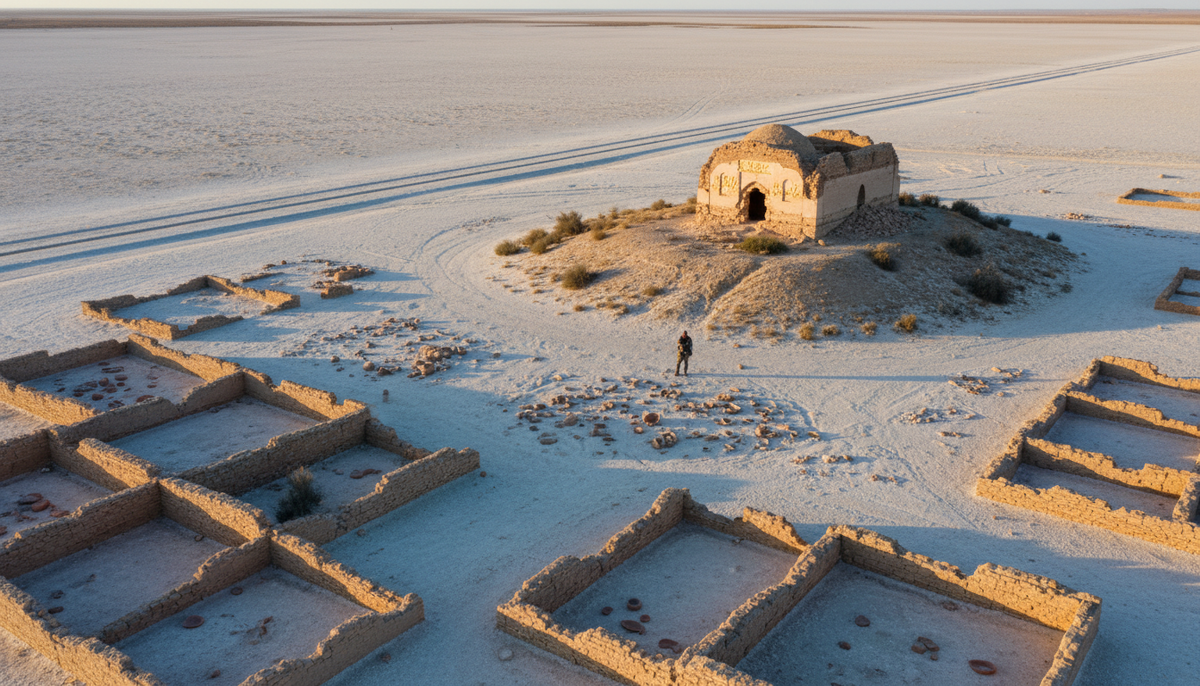 В глубине пустыни Устюрт, неподалеку от исчезающих берегов Аральского моря, находится загадочная гробница, окутанная множеством легенд и предположений. Она известна местным жителям как мавзолей Джусуп-Ата и считается местом упокоения святого мусульманского проповедника. Однако помимо религиозной значимости, эта гробница таит в себе древние тайны, способные заинтересовать ученых и путешественников. Расположенная в труднодоступной зоне, гробница возвышается посреди солончака и песчаной равнины. Она построена из кирпича и камня, и ее архитектура напоминает традиционный исламский мавзолей. Отличительной чертой является необычный рисунок кладки стены, создающий впечатление многослойности и архаичной архитектуры. Сооружение окружено остатками старых построек и каменными памятниками, вероятно относящимися к временам ранних среднеазиатских государств. Видимая простота постройки контрастирует с внутренними деталями интерьера, изобилующими геометрическими орнаментами и резьбой по кирпичу. Мест