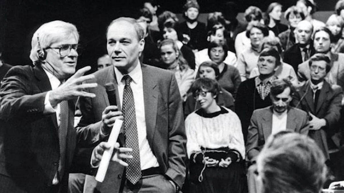 В январе 1987 года Фил Донахью записал в СССР с помощью спутникового телемоста пять эпизодов своего ток-шоу. По воспоминаниям телеведущего Влада Листьева, проект появился «с личного благословения» последнего генсека ЦК КПСС Михаила Горбачёва. Однако советские зрители узнали Фила Донахью ещё до его ток-шоу 1987 года. В 1985–1986 годах он стал одним из лиц знаменитых телемостов СССР–США, где жители двух официально враждующих стран внезапно получили возможность поговорить друг с другом, а не через заявления МИДа. Для эпохи «железного занавеса» это был почти телевизионный подвиг. Донахью и Познер: дуэт без партитуры Идея телемостов принадлежала именно Донахью. В партнёры он выбрал Владимира Познера, человека, способного переводить не только язык, но и смыслы. Позже этот тандем оказался настолько живучим, что в 1991–1996 годах они уже вместе вели программу на CNBC. 🌎 Телемост, который ушёл в народ, самый знаменитый выпуск вышел 28 июня 1986 года и соединил Ленинград и Бостон. Название б
