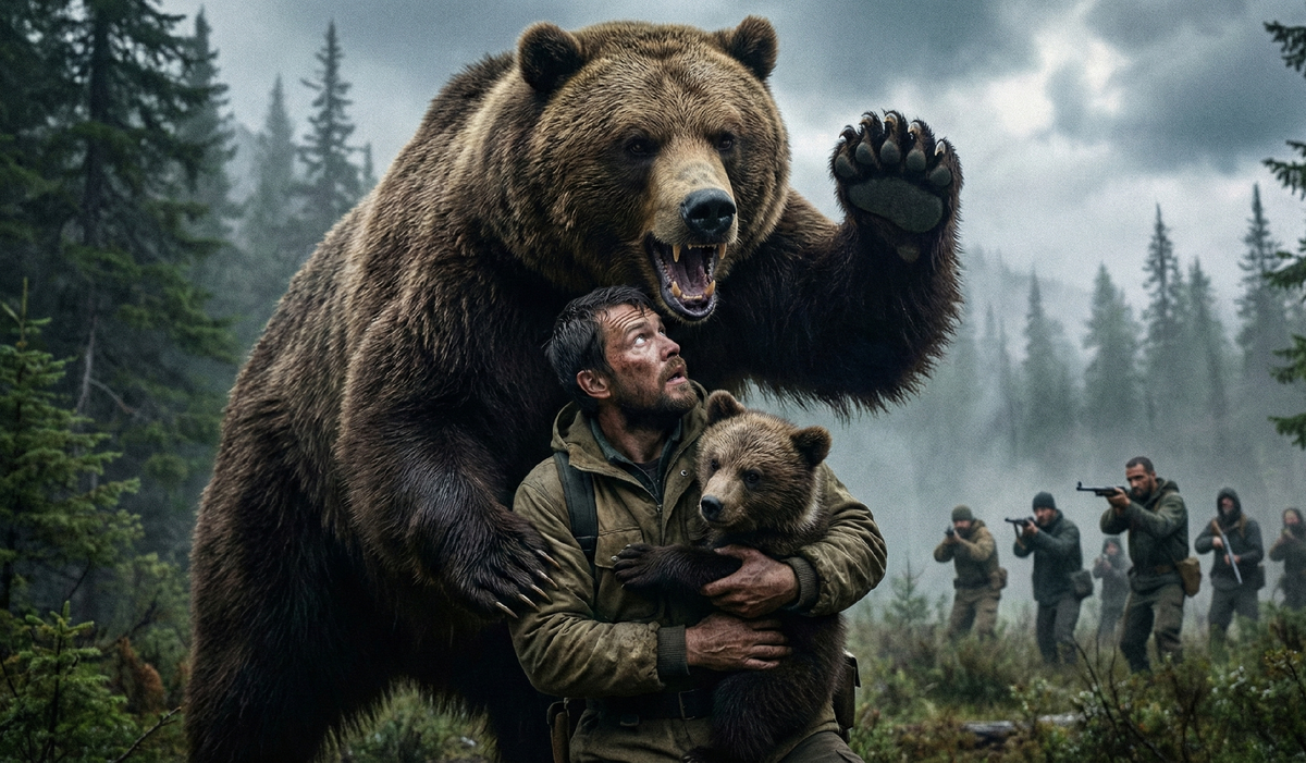 Медведь посмотрел на железную птицу, потом повернул массивную голову к Артему. В его серебряных глазах читалось спокойствие. Он фыркнул, словно прощаясь. Затем он легонько подтолкнул медвежонка носом к Артему, будто говоря: «Ты справишься, а мне пора».