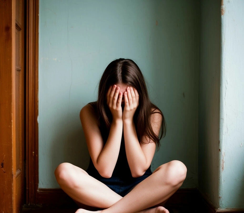 Ира вжалась в угол комнаты, сидя на холодном полу. Илья навис над ней со злым лицом, за волосы больно схватил.