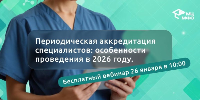 » 🗓️ 26 января в 10:00 (по МСК) Лектор: Капустина Юлия Вячеславовна — д.м.н., профессор, международный эксперт по аккредитации. Что разберём на встрече? ⬇️ ☑️ Какие изменения вступают в силу в 2026 году ☑️ Что означает подготовка Минздрава к 1 марта 2026 года и отмена ДО ☑️ Как действовать, чтобы избежать отказов и потери времени ☑️ Какие требования стали строже и где чаще всего допускаются ошибки ☑️ Как теперь правильно подавать документы на периодическую аккредитацию 💡 По итогам вебинара мы ответим на Ваши вопросы в режиме онлайн! 👉 Регистрация по ссылке: https://kursmedik.ru/accreditation_specialists ◢ МЫ В СОЦИАЛЬНЫХ СЕТЯХ ◣ ● Telegram: t.me/nmo_kurs ● VK: vk.com/nmo_kurs ● Наш сайт: https://kursmedik.ru/program ● Дзен: https://dzen.ru/nmo_kurs Будем рады видеть вас среди наших подписчиков! —————— Реклама ООО «Международный центр медицинского и фармацевтического образования» ИНН 9702021368, ОГРН 1207700292690