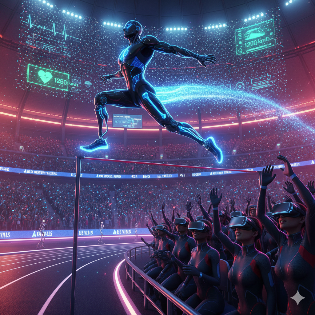 Мы привыкли, что спорт — это предел человеческих возможностей, за которыми мы наблюдаем с экрана телевизора или с жесткого сиденья стадиона. Но что, если атлеты станут симбиозом биологии и технологий, а вы сможете почувствовать их триумф каждой клеточкой своего тела? Эра обычного бега по дорожке сменяется эпохой киберспортивного гладиаторства. И глазом не успеете моргнуть, как олимпийские рекорды прошлого покажутся детской разминкой. Как это работает? Мы входим в эпоху нейросенсорного вещания и легального биохакинга. Немного юмора Главный курьез будущего — это «спортивный спам». Вы спокойно пьете чай, а ваш тактильный костюм внезапно имитирует падение в бассейн, потому что вы случайно подписались на уведомления от пловца-экстремала. И глазом не успеете моргнуть, как появятся новые споры: «Судья на мыло! У нападающего явно устарела прошивка левого колена, он промазал, потому что у него шло обновление драйверов прямо во время пенальти!» В чем главная интрига? Останется ли в таком спорте