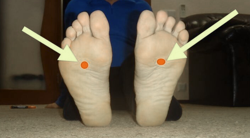 2. Лучшее время — вечер, за 30-60 минут до сна. Сядьте или лягте в удобной позе. Приложите источник тепла к точке «Кукчон» на одной, а затем на другой стопе, либо к обеим одновременно.