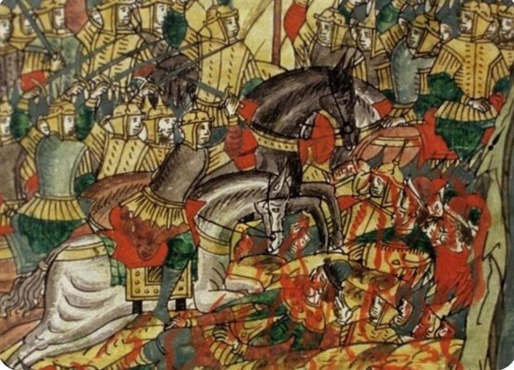 Великая неизвестная битва Битва была. Войско Мамая потерпело сокрушительное поражение. Последствия победы вскоре станут огромной моральной и духовной силой, которая не только будет укреплять строительство единого государства через сто лет, но и станет великой вехой нашей истории. Это, пожалуй, то определенное, что с уверенностью можно сказать о данной битве. Остальное – сложнейшее сочетание исторических фактов, легенд, преданий, сказаний, тайн и новых открытий. Исторические исполины: Дмитрий Донской, Пересвет, Ослябя, Сергий Радонежский, Дмитрий Боброк Волынский, Мамай, Челубей – все они сегодня в свете многого неизвестного, выходя из русской легенды, отбрасывают великие тени. Тени Куликова поля. Попробуем и мы, привлекая разные исторические источники, начать свое движение между этими великими тенями. Рождение легенды Национальный миф-предание о событиях Куликовской битвы был рожден из данных четырех источников: Летописной повести, «Жития Сергия Радонежского», «Задонщины» и «Сказани