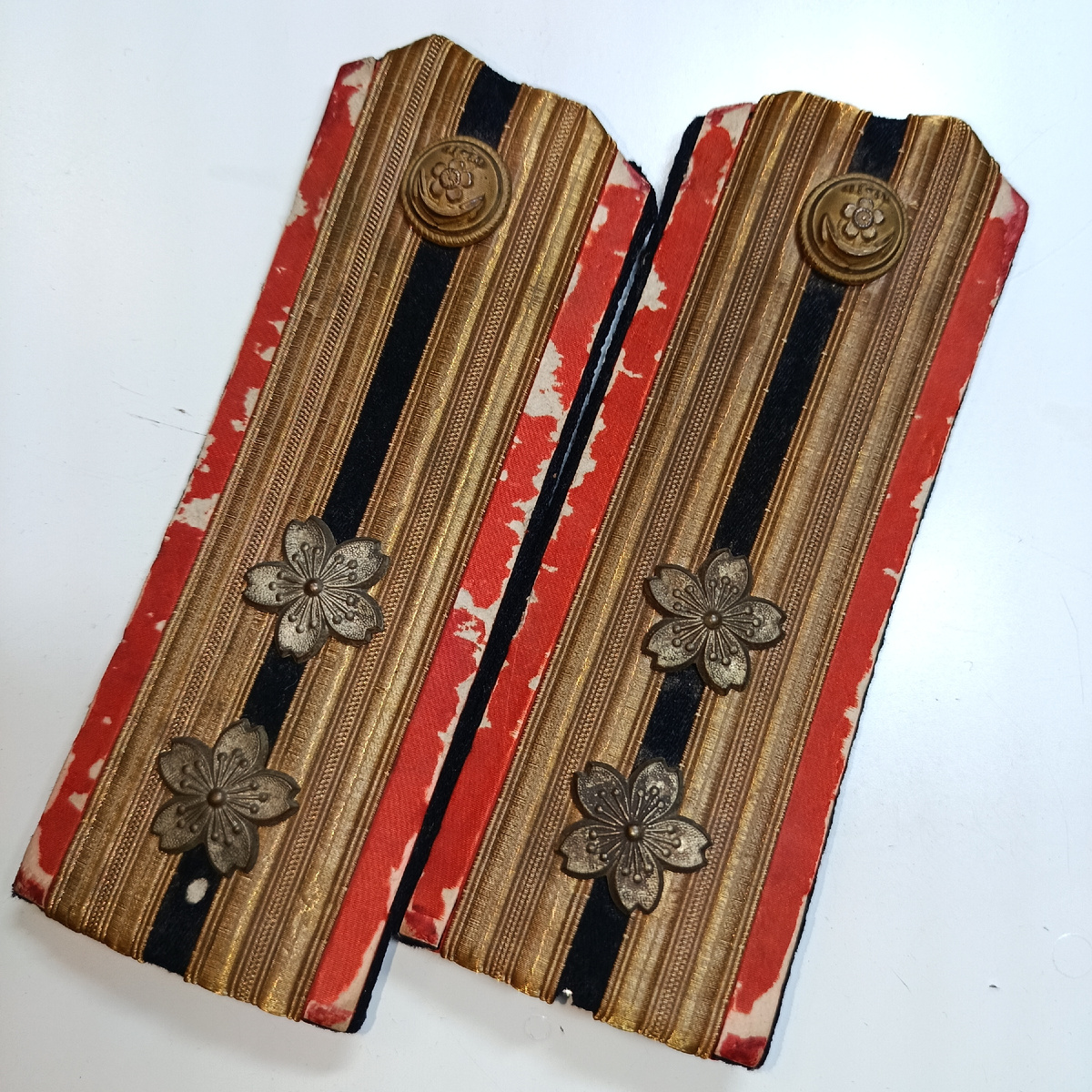 Достались по случаю пара погон капитана 2-го ранга медицинской службы японского императорского флота (или "гидроподполковника", как некоторые называют 😁). Не могу не поделиться. Докторские красные цвета имеют довольно потрепанный вид. Не могу дать абсолютной гарантии, но мечтательно верю, что потертости появились не из-за долгого лежания в сундуке у бабушки японского дедушки, а из-за дождей филиппинских джунглей. Обратная сторона доктора из настоящей кожи красного цвета. Теоретически это оленья кожа (но я не специалист). Первый владелец приобрел свои погоны в частной мастерской, а не получил у каптенармуса. Под застежками видны два иероглифа: 橋高. Это фамилия владельца. В императорских вооруженных силах того времени, впрочем, как и во всех вооруженных силах, стремились проклеймить и подписать все, что возможно. На менее "манерных" фамилию подписывал владелец тушью, обычно на обороте полухлястика; здесь - золотое тиснение на кожаном побое. В "дешифровке" иероглифов возможны вариант