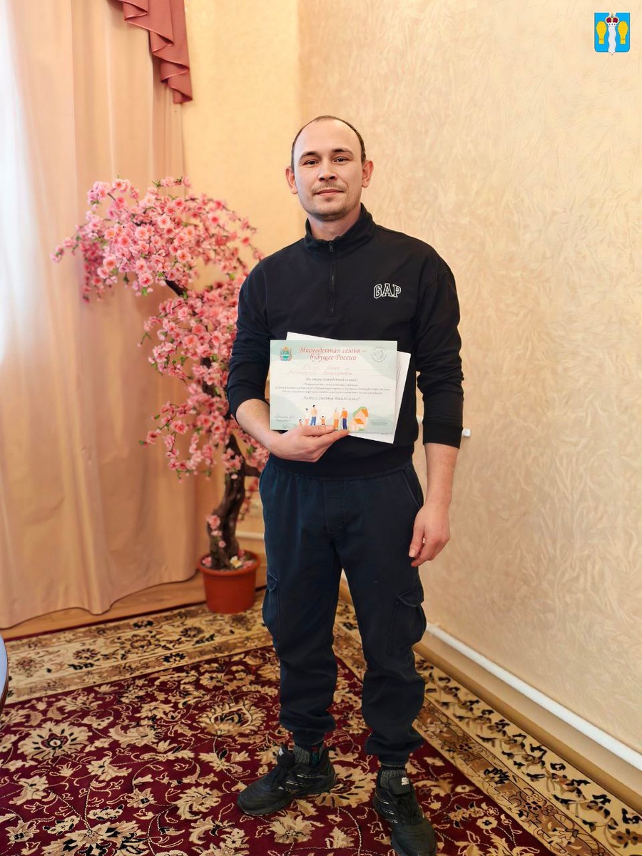 ✨ Поздравляем Илью и Анастасию Аристарховых с рождением третьего сына — Егора. В честь появления на свет нового гражданина, счастливому папе были вручены свидетельство о рождении, Благодарственное письмо Губернатора Калужской области, поздравительный адрес "Многодетная семья - будущее России". Поздравляем с пополнением вашу большую и дружную семью! Пусть ваш дом наполняют радость, тепло и счастье, а каждый новый день приносит вам только приятные сюрпризы и незабываемые моменты семейного счастья. Пусть малыш растет здоровым, веселым и любимым всеми членами семьи. Желаем вашему семейному союзу любви, гармонии и благополучия, ведь ваша семья — пример крепких семейных ценностей и настоящей заботы друг о друге.