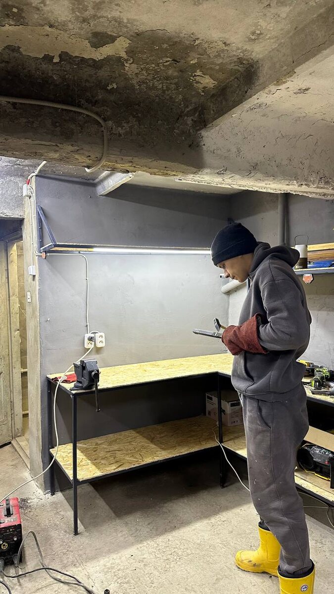 Всем привет!) Николай продолжает обустройство подвала. Провёл свет и розетки к рабочему месту.