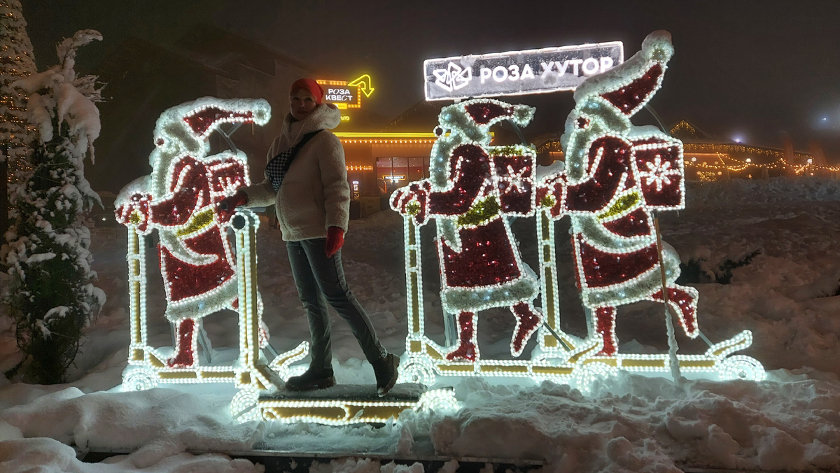 Сани находятся на уровне 1100 в Олимпийской Деревне и до них от станции РозаХутор нужно подняться на подъемнике, что дорого. А мы уже много раз в этих местах были и решили сэкономить, поехали на такси за 600 р.