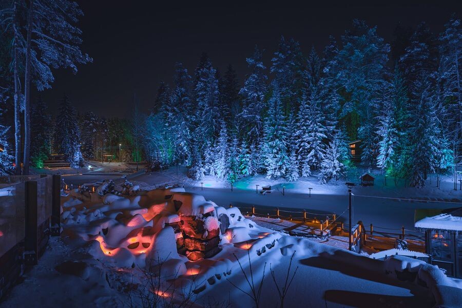 Всесезонный курорт «Охта Парк» превращается зимой в настоящий рай для семейного отдыха. Можно покататься на горнолыжных трассах разной сложности, от новичковых до профессиональных, или мчатся на «ватрушках» с горок. Бесплатные трассы для беговых лыж, пеших прогулок и финских саней пролегают через живописные леса. Лесной каток с подсветкой между соснами создаёт романтическую атмосферу, а Парк альпак позволяет погладить милых животных. Для релакса открыты спа-комплекс OHTAKAI с бассейнами, саунами, хаммамами и панорамными видами, а также рестораны с изысканной кухней.