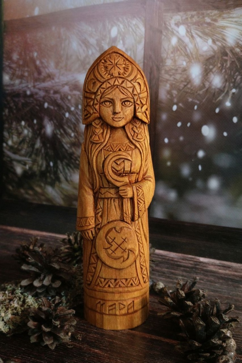 Одна уже на Севере, вторая — ждёт своего дома! Вырезала двух сестёр-Марушек, чтобы показать двойственность её природы: · Тёмная, хмурая — та, что забирает старое, завершает циклы. Она уже улетела далеко на Север, и её просили никому не показывать (обещала — слово держу! 🤫) · Светлая, добрая — та, что дарует покой, очищение и переход. Она осталась со мной, и я могу вам её показать! В её улыбке — тишина, а в руках — не конец, а начало. Обе — из липы, покрыты морилкой и льняным маслом, ростом 20 см. Но если тёмная уже нашла свой путь, то светлая Мара ищет свой дом. ✨ Цена: 4500 руб. + доставка ❗❗❗Бронь❗❗❗ Могу примерно повторить😊 #Мара #СлавянскаяМифология #ДеревяннаяСкульптура #РезьбаПоДереву #Оберег #ДвеЛика #Липа #РучнаяРабота P.S. Иногда защита — это не щит, а тихий переход. И эта Мара — как раз об этом. 🌿