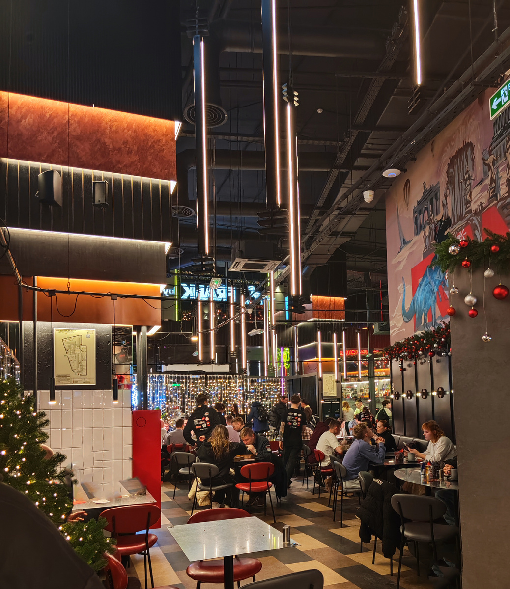 В один из новогодних предпраздничных дней, гуляя по ВДНХ, мы решили осуществить давнее намерение — посетить ресторан Frank by Basta. Нам давно его советовали знакомые, особенно нахваливая свиные рёбра. Ресторан находится недалеко от «Солнца Москвы» (колеса обозрения), так что найти его легко. Пришли мы вечером, и нам повезло — за одним из столиков, которых в ресторане было немало, освободилось место. Атмосфера была очень праздничной: уютный приглушенный свет, новогодняя ёлка, украшения. Чувствовался настоящий дух праздника. Отдельно хочется отметить сервис. У нас была просто шикарная официантка! Она не только помогла нам определиться с выбором, но и оперативно приносила блюда. Такое внимание и профессионализм — это высший пилотаж, и мы давно не встречали такого обслуживания. Пять с плюсом! Разумеется, мы пришли попробовать главную звезду меню — свиные рёбра. • Классические свиные рёбра (820 руб.) — выбор мужа. Сразу скажу, это было самое вкусное блюдо вечера! Нежнейшие рёбра в прекра