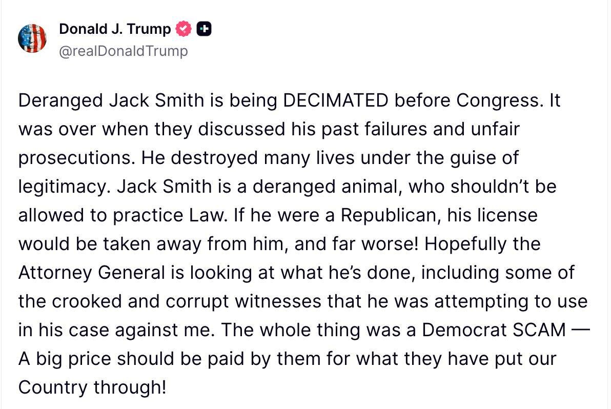 Trump goes after ‘DERANGED ANIMAL’ Jack Smith