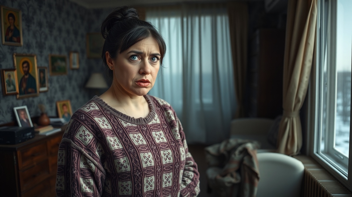 Кухня в маминой квартире всегда пахла одинаково – борщом, влажными тряпками и чем-то кисловатым, что въелось в стены за тридцать лет. Линолеум, на столе клеёнка с выцветшими розами, на подоконнике три чахлых фикуса в треснувших горшках. Я сидела на своём привычном месте – у окна, спиной к батарее – и смотрела, как мама нервно перебирает край кухонного полотенца.