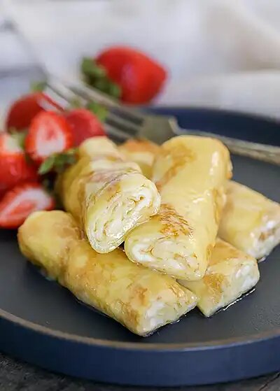 Эти восхитительные блинчики, или налистники, готовятся с начинкой из сладкого сыра, поливаются сгущённым молоком и запекаются. Неудивительно, что все от них в восторге. Обязательно попробуйте их приготовить. Вот рецепт блинчиков с начинкой. Продукты необходимые для приготовления:
