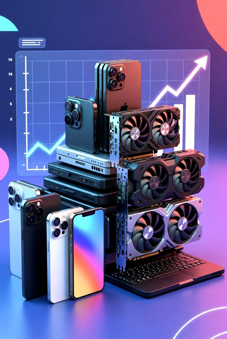 Видеокарты RTX 50-й серии, самой топовой встали на конвейере — нет памяти. Факт: только дата-центры ИИ жрут 3% мировой электроэнергии. Заводы TSMC, которые производят чипы загружены на 120%. 25% тарифы на Китай (iPhone, Xiaomi, Lenovo) — уже в цене с января 2026.
