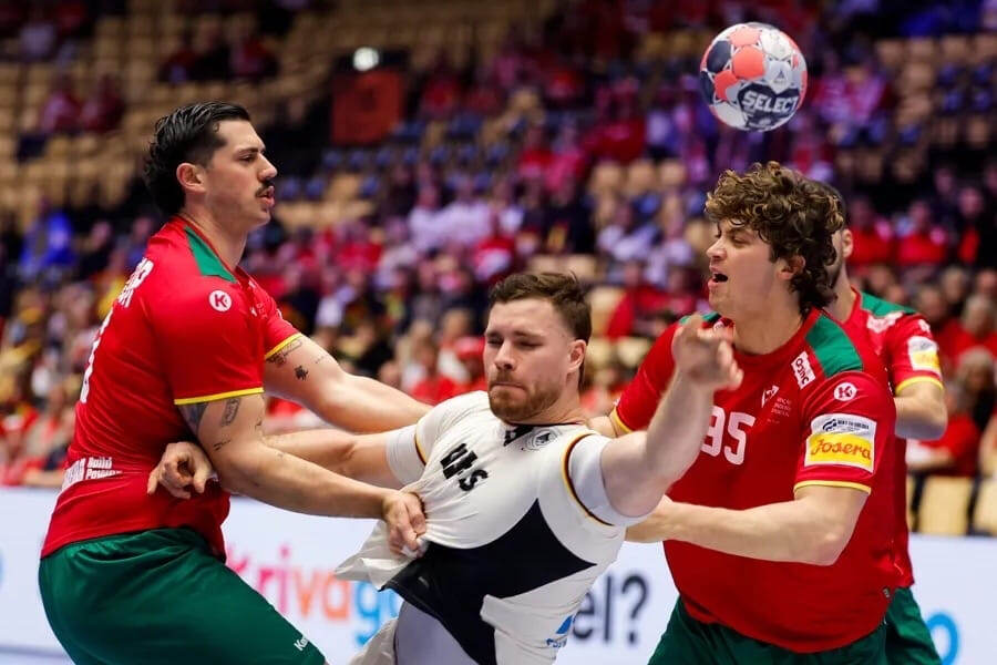 Второй этап чемпионата Европы-2026 стартовал с интригующей вывески - обыгравшие датчан португальцы встречались с немцами, которые заполонили новостную повестку в первую неделю турнира. БЦ спешит с деталями победы бундестим - 32:30. Пытающиеся впечатлить школьники Первые десять минут встречи можно крутить как рекламный ролик вида спорта - и те, и другие играли не только эффектно, но и эффективно. Было примерно всё - и воздушки, и подкрутки, и стремительные переходы, и классные быстрые розыгрыши в позиционном нападении, и яркие сейвы голкиперов. Однако потом темп игры резко упал. Соперники, будто забыв, что пару дней назад провели энергозатратные матчи в группе, напомнили самоуверенных школьников на физкультурном кроссе - пробежали первый круг заметно быстрее всех, но сил добраться до финиша не хватило. Слава Богу, перерыв привёл команды в чувство, и не самая впечатляющая активностью игра продлилась лишь до большой паузы. Вольфф снова делает разницу Таким малорезультативным первый тайм п
