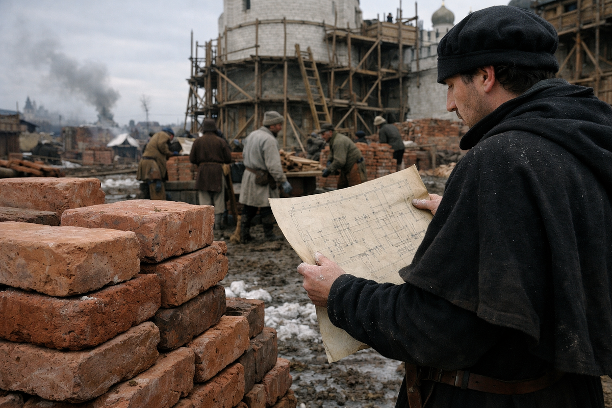 В 1485 году итальянский архитектор Аристотель Фиораванти получил от Ивана III задачу: построить кирпичный Кремль, который простоит пятьсот лет. Фиораванти прибыл из Болоньи, где строил дворцы для герцогов и передвигал колокольни краном собственной конструкции. Он знал фортификацию, знал математику, знал, как обжечь кирпич так, чтобы тот не крошился. Но в Москве его ждала проблема: кирпича не было.