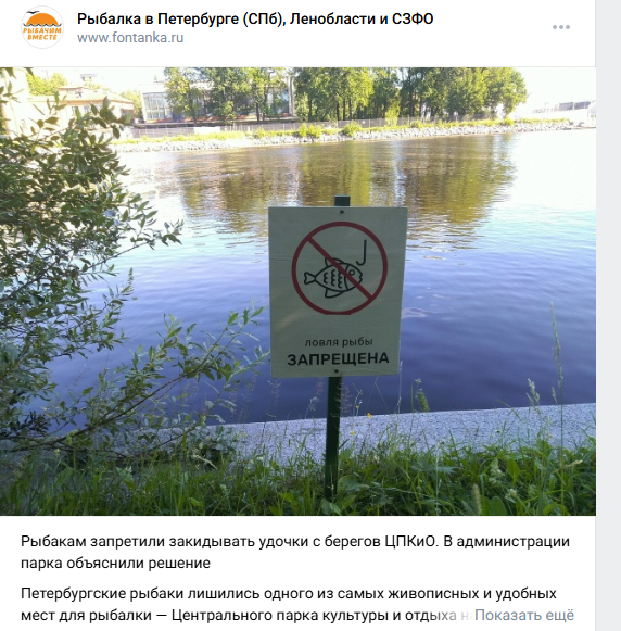 Для всех, кого заинтересовала рыбалка на острове Елагин в прудах центрального парка культуры и отдыха им. С. М. Кирова (сокращённо ЦПКиО) подготовил статью топ лучших мест ловли там. Читайте материал до конца, чтобы узнать тут добраться до воды, какая рыба водится и можно ли вообще её ловить. Эта информация поможет в поиске своего трофея. Да, рыбалка в парке запрещена, причём уже более 10 лет как действует этот запрет. Какое-то время назад эту тему резко подняли в СМИ из-за нескольких громких случаев конфликтов рыбаков с охраной. До этого общество рыбаков мало беспокоилось о подобных ограничениях. Тема эта сложная, как и обоснованность запрета тоже. Можно бесконечно спорить об этом, но запрет есть, и именно на прудах парка. При этом, на соседнюю Малую и Среднюю Невку он не распространяется, там рыбалка регулируется уже региональными правилами. Тем не менее таблички стоят везде, и у набережных Невки тоже. Это запрет обусловлен тем, что в 2012 г. территория ЦПКиО им С.М. Кирова (Елагин