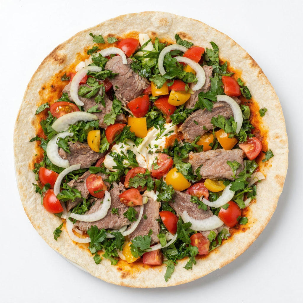 - Берем круглый лаваш. Если он слишком большой, можно разрезать его пополам.