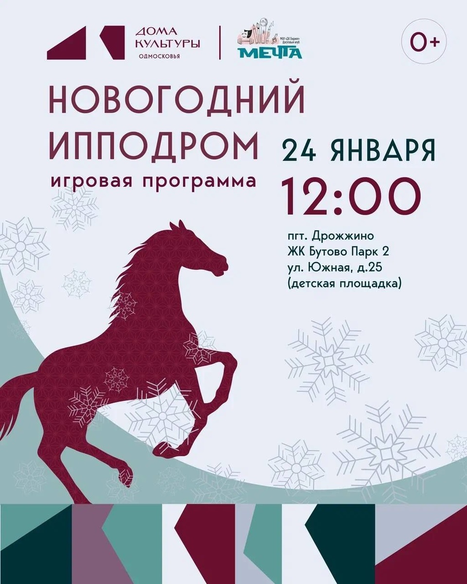 🐴 Друзья, спешим пригласить вас на веселую игровую программу «Новогодний ипподром»! ⚡️🐴 📆 24 января ⏳ 12:00 📍пгт. Дрожжино, ЖК Бутово Парк 2, ул. Южная, д.25 (детская площадка) 🎯 Вас ждёт: Весёлые игры и соревнования на быстроту реакции и координацию 🏇 Энергичные танцевальные флешмобы и зажигательная музыка 🎤 Интригующие загадки и задания ✨ Присоединяйтесь к нашей новогодней гонке, заряжайтесь отличным настроением и яркими эмоциями! 🔥🎈 Приходите и убедитесь сами! 😊 🚀Подпишись на Telegram канал Дрожжино