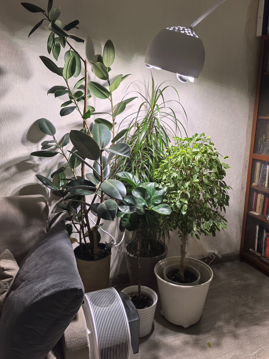 У меня с прошлой зимы случилась перестановка, а еще перегорела чрез 6 лет работы большая линейная фитолампа и мои крупняки остались без удобного места с подсветкой. Можно было б и не досвечивать - но все-таки я хочу, чтоб зимой они не только не умерли, но лучше - наоборот, росли и улучшали свое состояние.