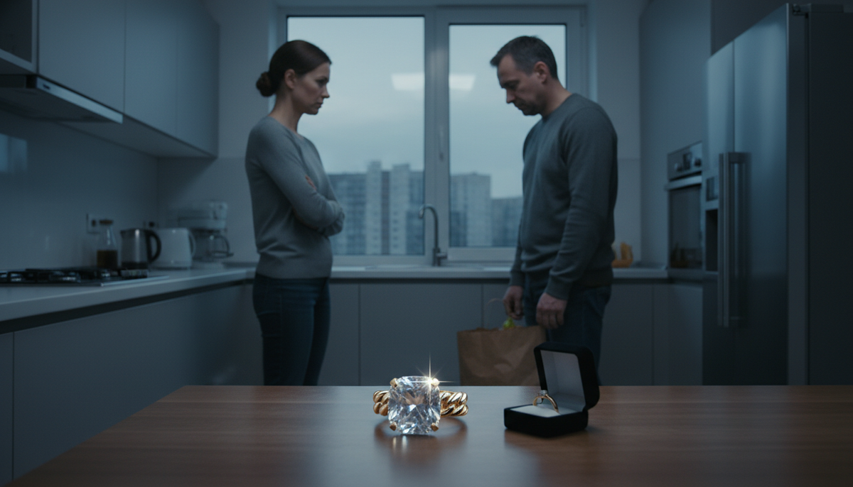 — С днём рождения, любимая! — Муж Антон протянул мне бархатную коробочку. — Закрой глаза! Я закрыла. Сердце билось. Мы давно не дарили друг другу дорогих подарков. Ипотека, ремонт... — Открывай! Я открыла. На бархате лежало кольцо. Золотое. С крупным камнем. Он сверкал как звезда. — Боже... Антон... Это же... — Бриллиант. Чистой воды. Полтора карата. Я ахнула. Полтора карата?! Это же бешеные деньги! — Откуда?! — Премию дали. Большую. Я решил: ты достойна лучшего. Носи, моя королева! Я надела кольцо. Оно сияло. Подруги завидовали. — Ну Антон! Ну мужик! Полтора миллиона минимум такое стоит! — Да ладно, — смущалась я. — Главное внимание. Я берегла кольцо. Снимала, когда мыла посуду. Хранила в сейфе. Антон ходил гордый. — Я жену балую! Не то что ваши мужья! Через месяц у нас сломалась машина. Ремонт — 100 тысяч. Денег не было (после покупки «бриллианта» бюджет просел, Антон сказал, что потратил всё). — Слушай, — сказал Антон. — Может, займем? — У кого? Родители сами на пенсии. Слушай... А