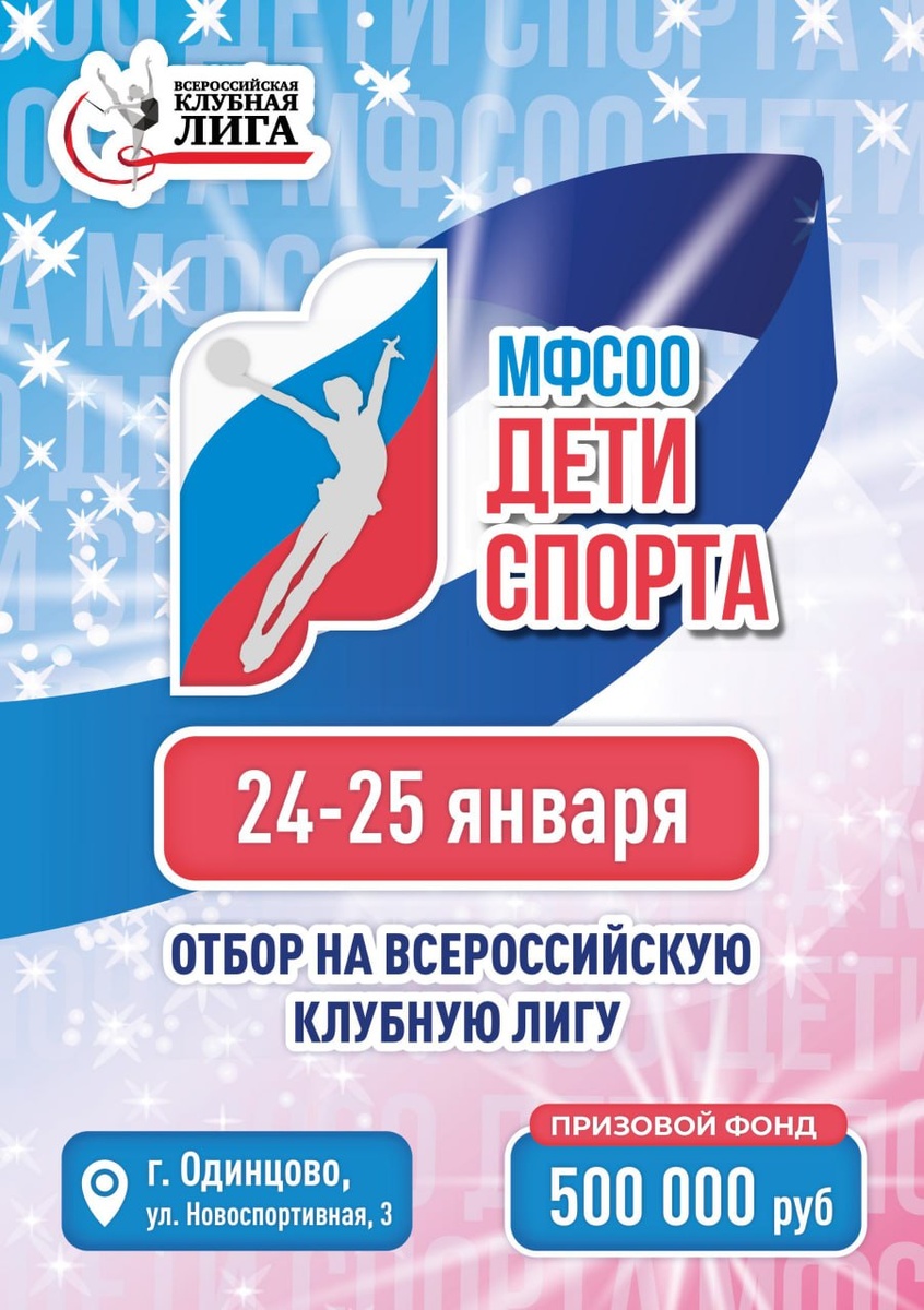 » 🏆✨ Отбор на Всероссийскую Клубную Лигу 📅Даты: 24–25 января 2026 года 📍Место: г. Одинцово, ул. Новоспортивная, 3 ⚡️Главный судья турнира: Капранова Ольга Сергеевна 💥Особенности соревнований: • Более 600 участниц из 4 регионов! • Призовой фонд 500 000₽ разыгрывается в командном зачёте среди всех спортивных клубов. • Командный результат определяется суммированием баллов лучшей гимнастки клуба в каждой возрастной группе (с 2010 года рождения и старше). • Всем участникам начисляются рейтинговые очки Клубной Лиги. 🎯Турнир — это отличная возможность для клубов закрепить позиции в рейтинге, подготовиться к Всероссийской Клубной Лиге и показать свои лучшие результаты на международном уровне! 📄Подробности и положение: ссылка на документ