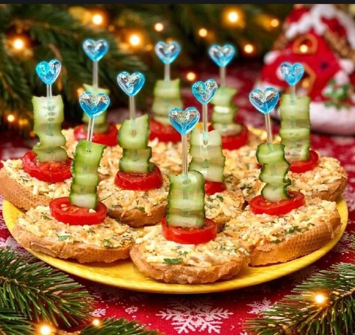 ИНГРЕДИЕНТЫ (10 шт.): ✅ Батон — 1 шт. ✅ Копчёный сыр — 200 г ✅ Яйца — 3 шт. ✅ Морковь — 1 шт. ✅ Чеснок — 1–2 зубчика ✅ Зелень (укроп, петрушка) — по вкусу ✅ Майонез — 50–80 г ✅ Соль, чёрный молотый перец — по вкусу ✅ Шпажки — для подачи 👉 По желанию для украшения: свежий огурец, помидоры ПРИГОТОВЛЕНИЕ: 1. Батон нарезать ломтиками. Подсушить их в тостере, духовке или на сухой сковороде до лёгкой румяности. 2. Яйца отварить вкрутую (10 минут после закипания), остудить и очистить. 3. Морковь очистить и натереть на мелкой тёрке. 4. Яйца натереть на крупной тёрке. Копчёный сыр также натереть на крупной тёрке. 5. Зелень мелко нарезать. Чеснок мелко порубить ножом или пропустить через пресс. 6. В миске соединить сыр, яйца, морковь, зелень и чеснок. Добавить майонез, посолить, поперчить и тщательно перемешать до однородной массы. 7. Намазать получившуюся начинку ровным слоем на подсушенные ломтики батона. 8. При желании сверху выложить кружочек помидора для сочности. 9. Огурец нарез