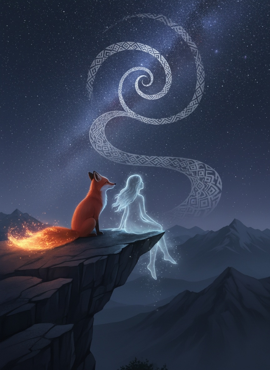 В этот момент из-за Врат вышел образ — не дух, не человек, а она сама, такой, какой была до пути: с огненным хвостом, с именем на языке, с песней, готовой разорвать небо.