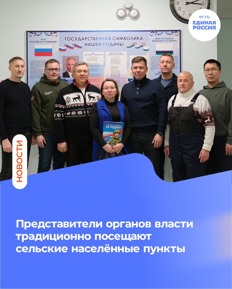 Сенатор Российской Федерации Александр Лутовинов, председатель Собрания депутатов Ненецкого автономного округа Александр Чурсанов, председатель постоянной комиссии окружного парламента по вопросам образования, культуры и спорта, заместитель председателя Собрания депутатов Евгений Шестаков и депутат Совета Заполярного района Сергей Рочев совершили рабочую поездку в посёлок Нельмин-Нос.