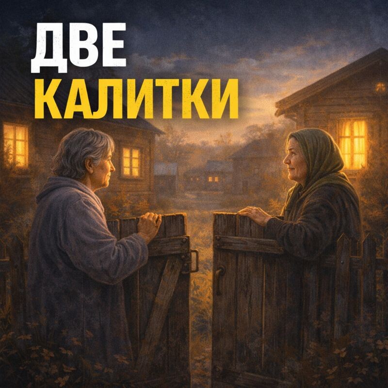Они сидели, глядя на закат. В окнах горел свет — тёплый, жёлтый, домашний. Две калитки стояли рядом, как всегда. Деревня дышала вокруг них — тихая, живая, настоящая.