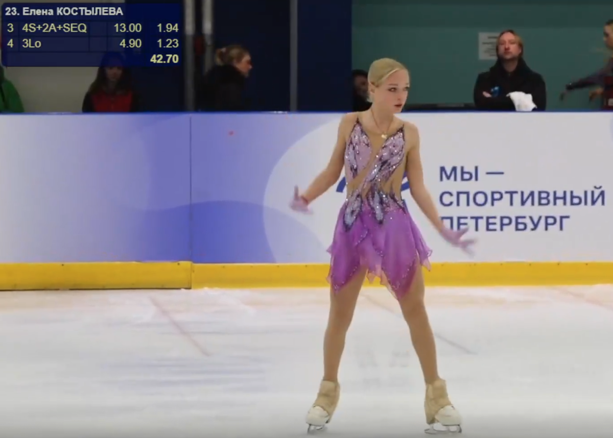 Да уж. Такого никто не ожидал. И я, когда смотрела произвольную программу Елены Костылевой, не понимала, как и почему случился этот сбой. В первой половине проката все шло хорошо и как обычно - Лена твердо и уверенно исполняла элементы, а музыка играла фоном. Если в короткой у нее хотя бы есть какое-то подобие хореографии, то в произвольной с первых секунд этот компонент напрочь отсутствует. Лена просто прыгает свои красивые ультра-си. А теперь вспоминаем - ей 14 лет. Характер у девочки и так непростой, сейчас осложнен и подростковым периодом, и свалившейся на нее ответственностью за комфорт и жизнь припеваючи ее родителей. Почему?! Ирина Костылева считает, что раз она вкладывала годами миллионы в развитие своей дочери, ребенок должен эти деньги отработать. И знаете, я впервые увидела в прокате, что Лене тяжело. Это выдох после финального вращения первой половины и остановка все сказали сам за себя: А дальше... Дальше началось. Три падения с прыжковых элементов, повтор прыжка, пониже