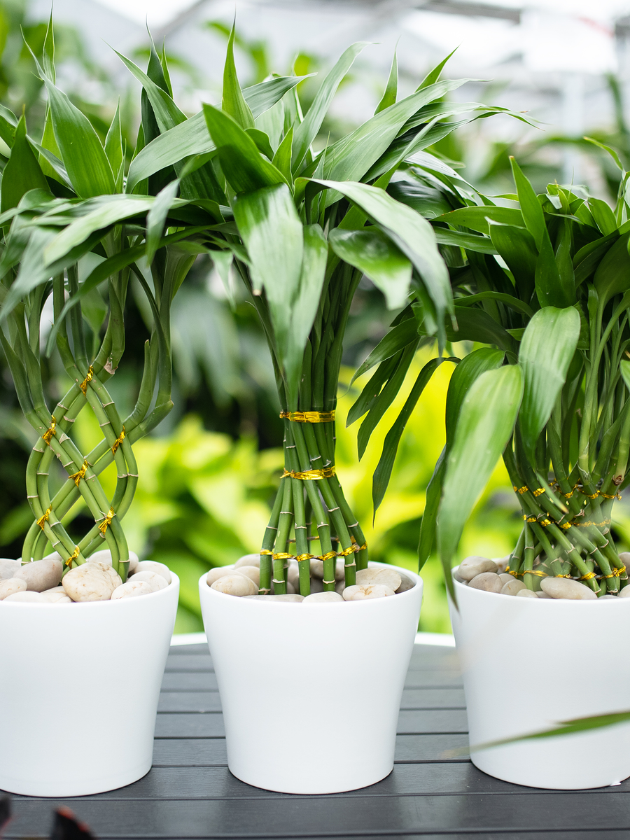 Есть пять элементов, которые делают растение «Счастливый бамбук» ещё более «счастливым»: земля — камни, окружающие стебли; металл — декоративные монеты, золотые акценты или металлический горшок; вода — подкормка для растений; огонь — красная лента или другой красный акцент; и, конечно, дерево — сам бамбук.