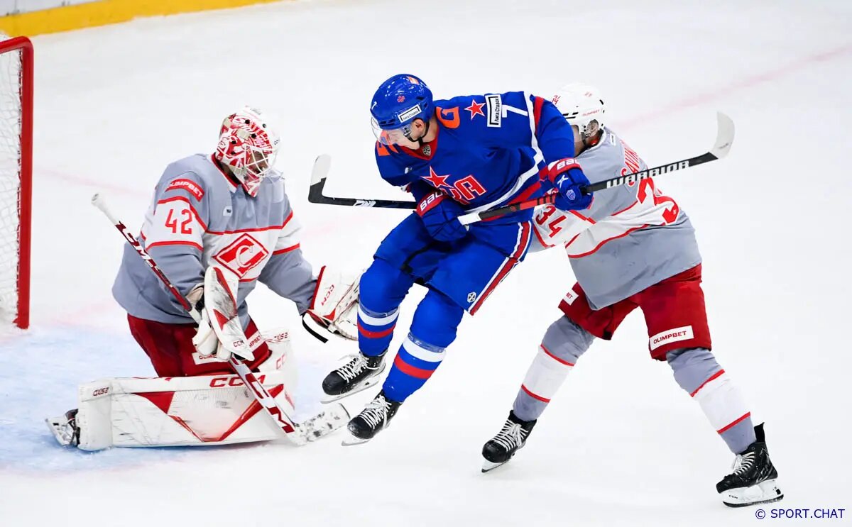 Московский Спартак одержал выездную победу над СКА со счётом 2:1, переломив ход встречи в третьем периоде. Красно-белые проявили характер, дважды поразили ворота соперника в заключительном отрезке и забрали важные два очка. 🏒 Ход матча Хозяева активно начали встречу и уже на 4-й минуте открыли счёт — точный дальний бросок удался Никита Недопёкин. В дальнейшем СКА продолжал оказывать давление, перебрасывал гостей и чаще владел инициативой, однако Александр Георгиев уверенно действовал на последнем рубеже. Во втором периоде игра выровнялась: команды действовали осторожно, много боролись, обменивались удалениями, но счёт на табло не изменился. Решающий отрезок остался за «Спартаком». На 53-й минуте Никита Коростелёв восстановил равенство, а уже на 58-й минуте Данил Пивчулин реализовал выход один на один и забросил победную шайбу. В концовке СКА снял вратаря и пошёл на финальный штурм, но гости выстояли. ⚡ Ключевой момент Гол Пивчулина на 57:06 стал решающим — после него «Спартак» грамотн