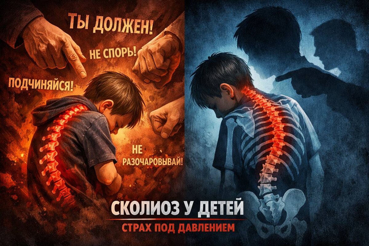 » РЕЦЕПТ СКОЛИОЗА У РЕБЕНКА Кулинария семейного давления. Блюдо называется: «Сколиоз с детства, подаётся к подростковому возрасту». Берём ребёнка. Любого. Живого. Прямого. С позвоночником, который пока ещё верит в жизнь, и стремится к солнцу. Дальше начинаем готовку. С самого утра повышаем голос. Не обязательно орать — можно говорить правильно. Это даже опаснее. Спокойным тоном, но без выбора: «Я лучше знаю». «Делай, как сказано». «Хватит глупостей». «Ты ещё маленький, чтобы понимать». Важно: всегда быть правым. Ошибаться родителю нельзя — ребёнок же увидит, что взрослый человек может сомневаться. Ужас же! Добавляем крик. Желательно ультразвуковой. Не как эмоцию, а как инструмент воспитания. Чтобы ребёнок не чувствовал, а подчинялся. Следующий ингредиент — давление. Невидимое. Постоянное. Как бетонная плита над головой. Желательно прям нависать над ребенком, давлеть, даже издалека… — Ты должен. — Ты обязан. — Ты подводишь. — Ты разочаровываешь. И вот здесь начинается телесная маги