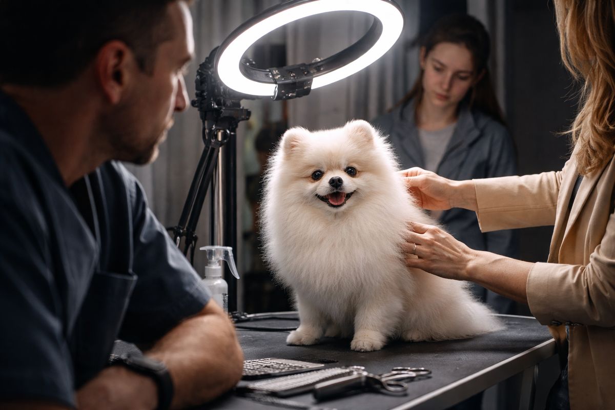 Важно им, конечно, было не «в форме». Важно, чтобы пёс выглядел так, будто жизнь — это вечная фотосессия, где никто не устает, не путается, не боится и не хочет в туалет.