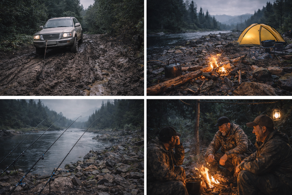 Изначально это должен был быть самый обычный выезд. Из тех, про которые потом говорят коротко: съездили, посидели, не клевало, разъехались. Мы так и планировали. День, максимум до темноты. Никаких ночёвок, никаких подвигов, никакой романтики. Просто выбраться, размяться, сменить обстановку и вернуться домой с пустыми руками, но с ощущением, что хоть куда-то съездил. Собрались быстро и без фанатизма. Взяли минимум — удочки, термос, перекус, запасную куртку на случай ветра. Палатку даже не обсуждали, потому что зачем она нужна, если вечером ты уже дома. Именно такие выезды и опасны — когда ты уверен, что всё под контролем и ничего неожиданного случиться не может. Место выбрали знакомое. Не секретное, не глухое, не экстремальное. Обычная река, куда ездили не раз. Дорога туда заняла больше времени, чем мы рассчитывали, но это никого не напрягло. Опоздание на рыбалке кажется мелочью. Пока не начинает тянуть за собой всё остальное. Первый тревожный звоночек прозвенел, когда мы поняли, что к