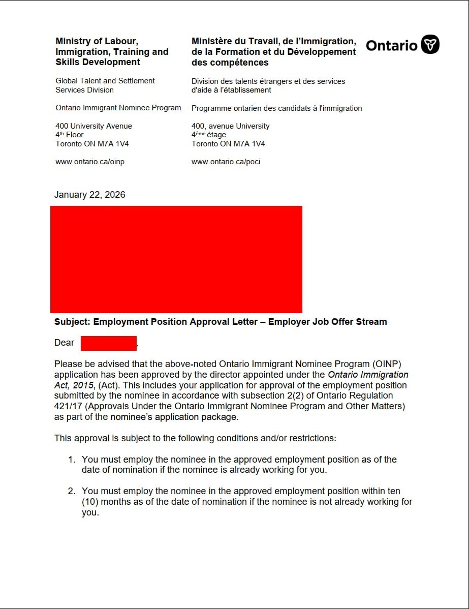 и получают ПМЖ. Вот сегодняшнее письмо: одобрение по программе OINP, поток Employer Job Offer. Причем через новый портал Онтарио, который не так давно запустили. Провинциальная номинация — это серьезный шаг к ПМЖ. Дальше федеральная заявка, и можно ждать постоянного резидентства. Да, иммиграция стала сложнее. Да, требования выросли. Но «сложнее» ≠ «невозможно». Поздравляем нашего клиента! 🥳 #кейсы