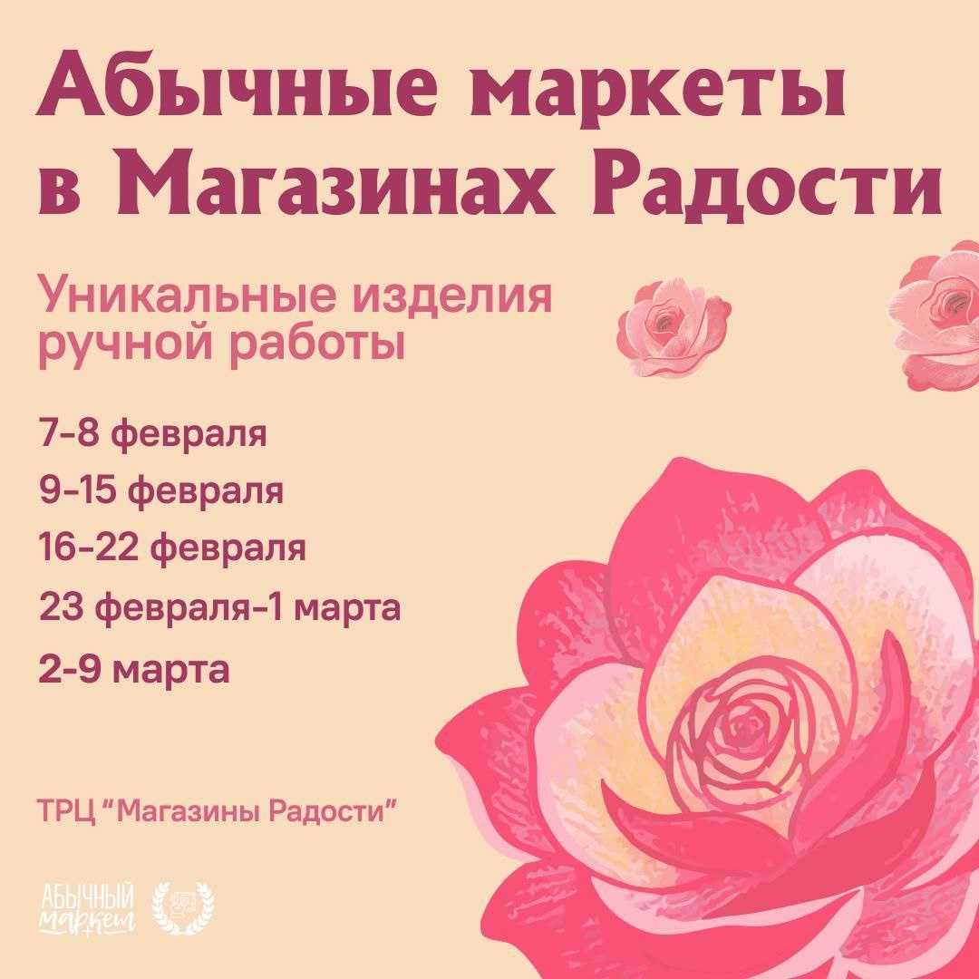 » ✔ Белка-маркет — #7_февраля–#8_февраля ✔ Лемур-маркет — #9_февраля–#15_февраля ✔ Енот-маркет — #16_февраля–#22_февраля ✔ Орёл-маркет — #23_февраля–#1_марта ✔ Цветочный маркет — #2_марта–#9_марта ⛳ Где: ТРЦ «Магазины Радости», 1 этаж 💳 Вход свободный 👉 Афиша Хабаровска. Куда сходить, экскурсии