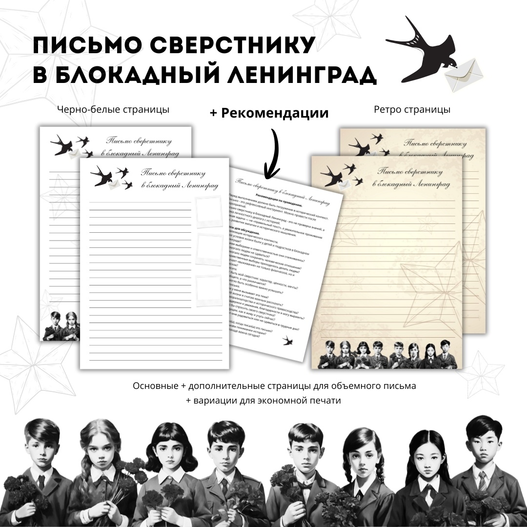 Я сделала шаблоны страничек "Письмо сверстнику в блокадный Ленинград". Формат для печати pdf и jpeg + редактируемый формат pptx.