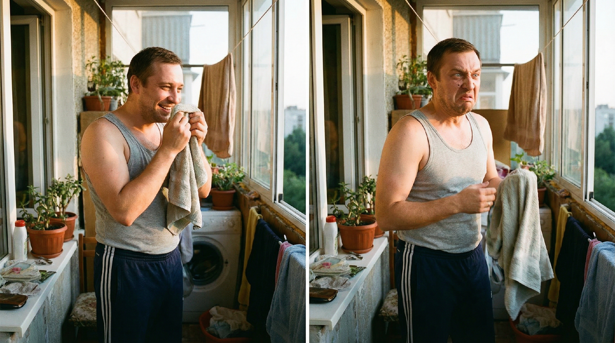 Намочили полотенце — они проснулись. Через несколько часов запах уже бьет в нос. Вот почему полотенце пахнет даже после стирки: микробы выжили и ждали своего часа.