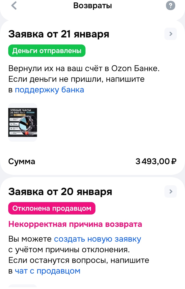 Продавец дважды отказывал в возврате. Тогда я открыла спор и написала в чат поддержки, ловко применяя всякие умные словечки типа "претензия", "статья какая-то", "РПН"😅 Тут же мне оформили возврат. Разумеется, больше никакую техники в маркетплейсах я брать не буду.