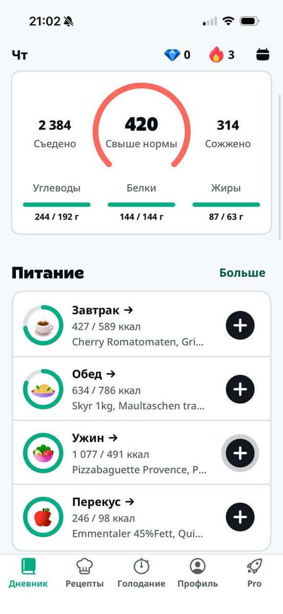 Да уж теперь понятно почему я не худею. Это суточная норма что бы держать вес. Мне надо -500 калорий что бы быть в дефиците. Вот 1650 ксал я должна есть что бы похудеть. Ну для первого дня хотя бы больше понятно. Теперь будем исправлять. Желайте удачи 🍀