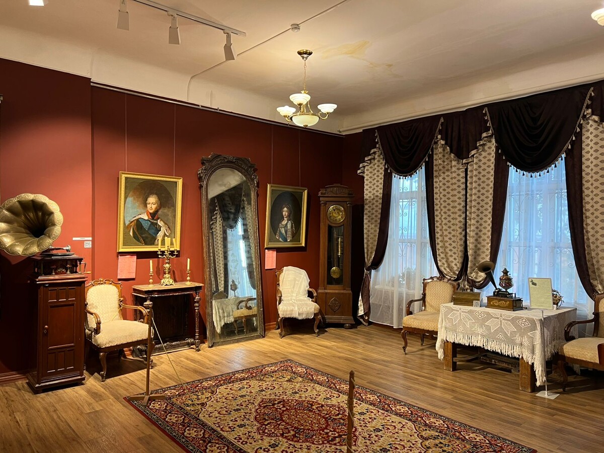 В музыкальной гостиной – различные музыкальные инструменты, такие как фонограф, струнный граммофон, музыкальная шкатулка, шарманка и др. Все инструменты – действующие, их можно послушать!