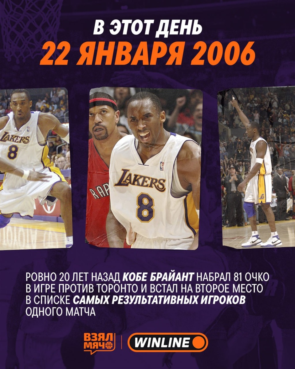 Ровно двадцать лет назад Кобе Брайант набрал 81 очко за матч (28/46 с игры, 7/13 из-за дуги, 18/20 штрафных) — второй результат за всю историю лиги: 🔸 Во второй половине Кобе набрал 55 очков — больше, чем вся команда «Торонто» после перерыва (41). 🔸 «Лейкерс» уступали −18, но Брайант в одиночку перевернул игру. Это самый результативный матч современной эпохи. Выше — только легендарные 100 очков Уилта Чемберлена. Кобе позже признался: он понял, что сотворил историю, лишь взглянув на табло в концовке. Пересматривайте целый матч с комментариями Игоря Знаменского во #ВзялМячРетро 😏 🏀 ПОДПИШИСЬ — ЗДЕСЬ ЖИВЁТ БАСКЕТБОЛ!