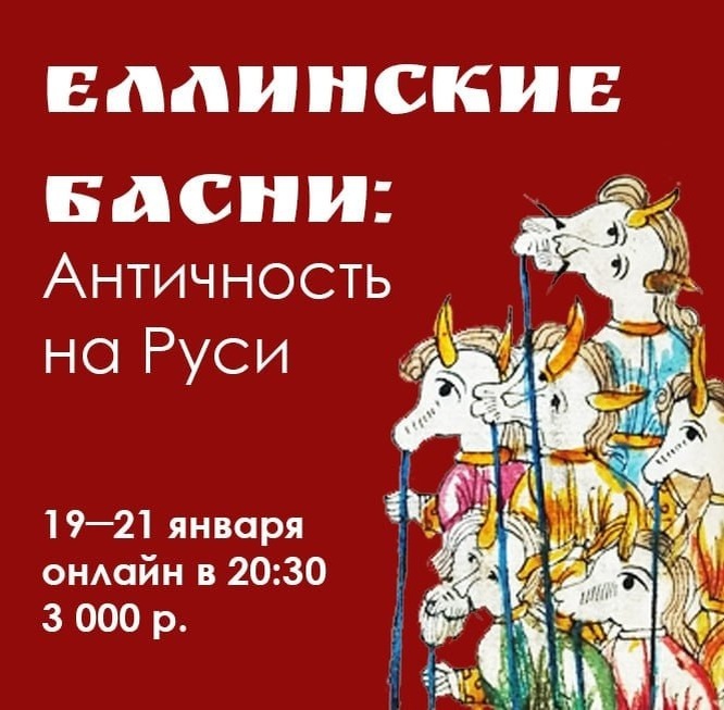 , фантастических существах и многом другом! 26 января 20:30 «Дети своя глотал»: античная мифология на Руси Откуда на Руси знали истории про Зевса, Аполлона и Афродиту? Кто из античных богов был вскормлен обезьяной? Как представляли в средневековье богов: бесами, правителями или пророками? 27 января 20:30 «Не на лице зри»: античная философия и литература Знали ли на Руси басню о вороне и лисице? Пророчествовал ли Гомер о Христе и читали ли у нас Аристотеля? Повлиял ли Гиппократ на отечественную медицину? 28 января 20:30 «Омировым писанием научи»: греческая история Правда ли, что Александр Македонский встретился с амазонками? Как изображали на Руси Троянского коня? Почему царица Клеопатра попала в истории про животных? Для регистрации пишите нашему лектору t.me/butski91